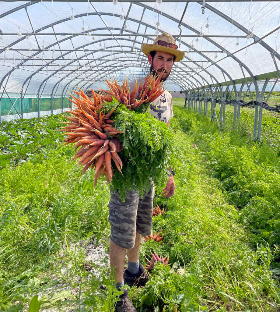 Je produisais des plants depuis mon installation en 2017, principalement pour la production de légumes. Et c’est cette partie du métier que j’ai toujours préféré, la genèse, au départ d’une petite graine. En 2023, Anthony qui était alors en stage au sein de mon exploitation, cherchait un lieu d’installation. Je lui ai alors proposé de reprendre mon atelier de maraîchage avec son collègue Benjamin, ce qui m’a permis d’en créer un nouveau : PlantOn.