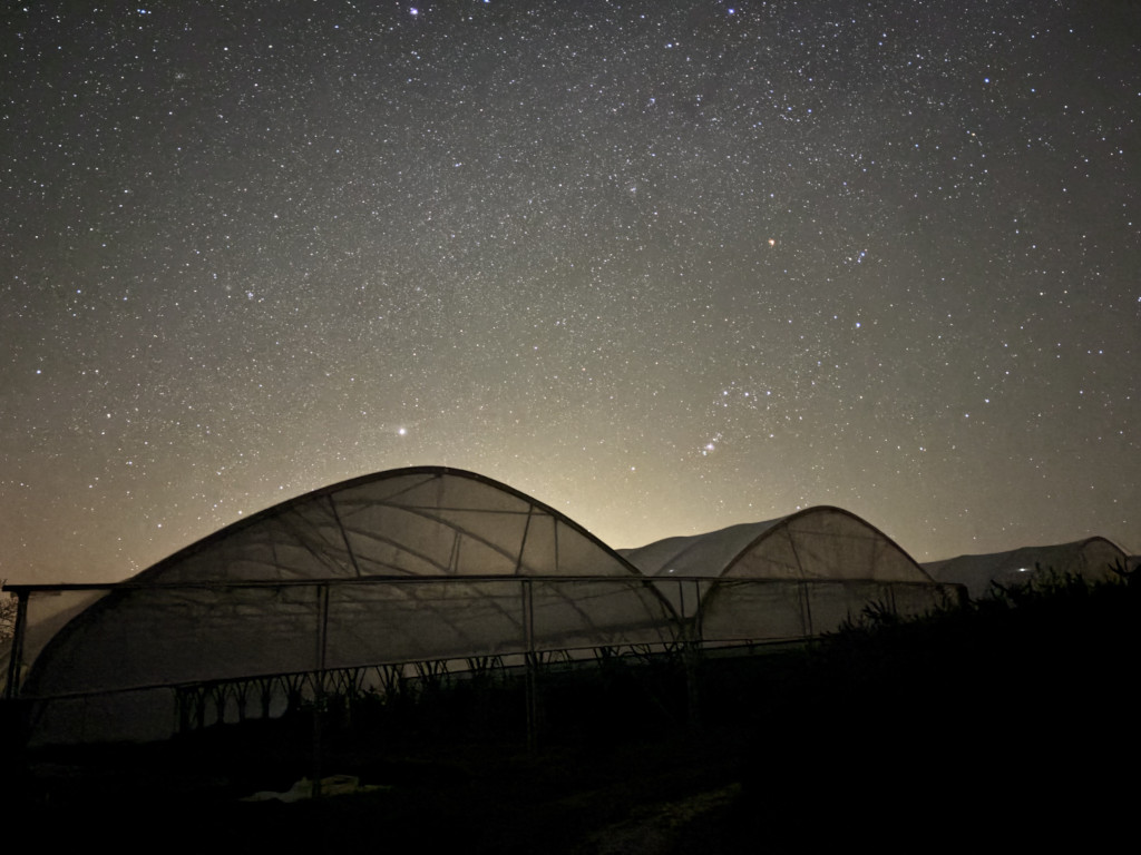 Passionné d’astronomie, je profite aussi de la situation de la ferme, isolée des lumières parasites, pour faire des nuits d’observation et d’astrophotographie. Je mets ainsi en lien cette passion avec les influences des corps célestes sur les plantes que je produis ; je travaille en effet beaucoup avec le calendrier lunaire.